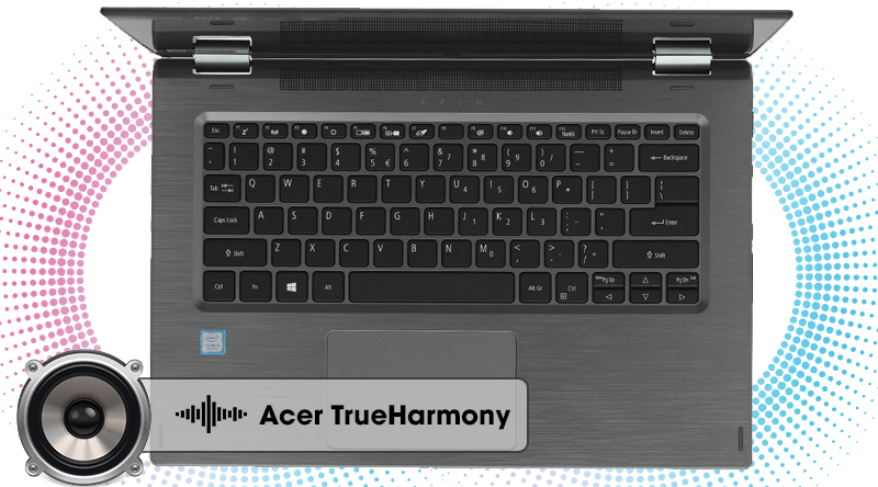 Công nghệ âm thanh Acer TrueHarmony đượ sử dụng trên laptop văn phòng này nhằm đem lại cho chiếc máy chất lượng âm thanh hoàn hảo, to rõ và sống động. Hệ thống loa kép đặt ở vị trí đặc biệt giao giữa bàn phím và bản lề giúp người dùng dù đặt ở vị trí nào vẫn có thể nghe được trọn vẹn âm thanh.