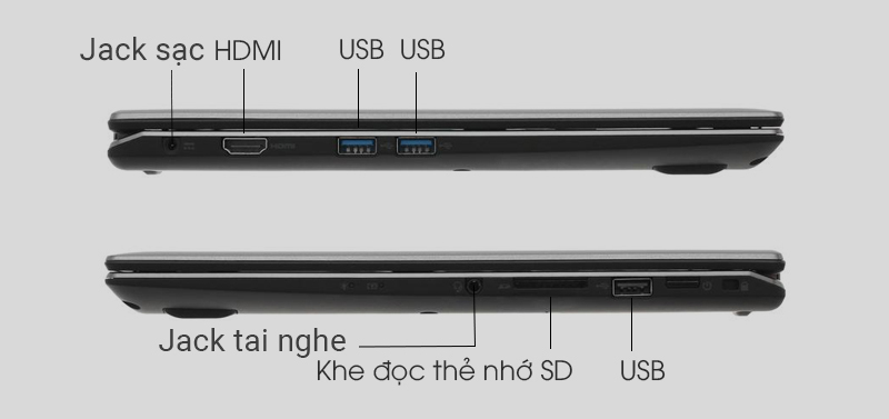 Nhằm đem lại sự tiện lợi cho người dùng, laptop Acer Spin 3 SP314 được thiết kế với nhiều cổng kết nối: USB 3.0, USB 2.0, HDMI,... giúp việc kết nối laptop với các thiết bị khác như tivi, máy chiếu,... trở nên dễ dàng hơn.