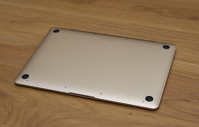 Lớp vỏ kim loại với màu bạc truyền thống và hai màu mới là vàng và xám không gian. Kích thước máy siêu mỏng và nhẹ, cân nặng chỉ 920grams và dày 13.1 mm, mỏng hơn đến 24% so với chiếc MacBook Air hiện tại. Đây được xem là dòng laptop đỉnh cao khi di chuyển bởi độ gọn nhẹ của nó.