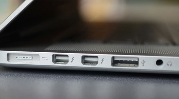 Khác với nhiều chiếc laptop khác Macbook Pro ME294 khiến người dùng khá thích thú với khả năng kết nối phong phú và có phần độc nhất của nó. Cổng sạc MagSafe 2 có nam châm bắt dính rất dễ sử dụng và tháo lắp, ngoài 2 cổng USB 3.0, thiết bị còn cổng HDMI, khe đọc thẻ nhớ và jack 3.5mm.
