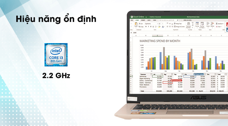 Laptop Asus A510UA i3 8130U với thiết kế đơn giản, chất liệu vỏ nhựa cứng cáp bền bỉ. Máy có trọng lượng chỉ 1.7 kg, việc mang máy theo sử dụng mọi lúc mọi nơi sẽ vô cùng thuận tiện cho người dùng.