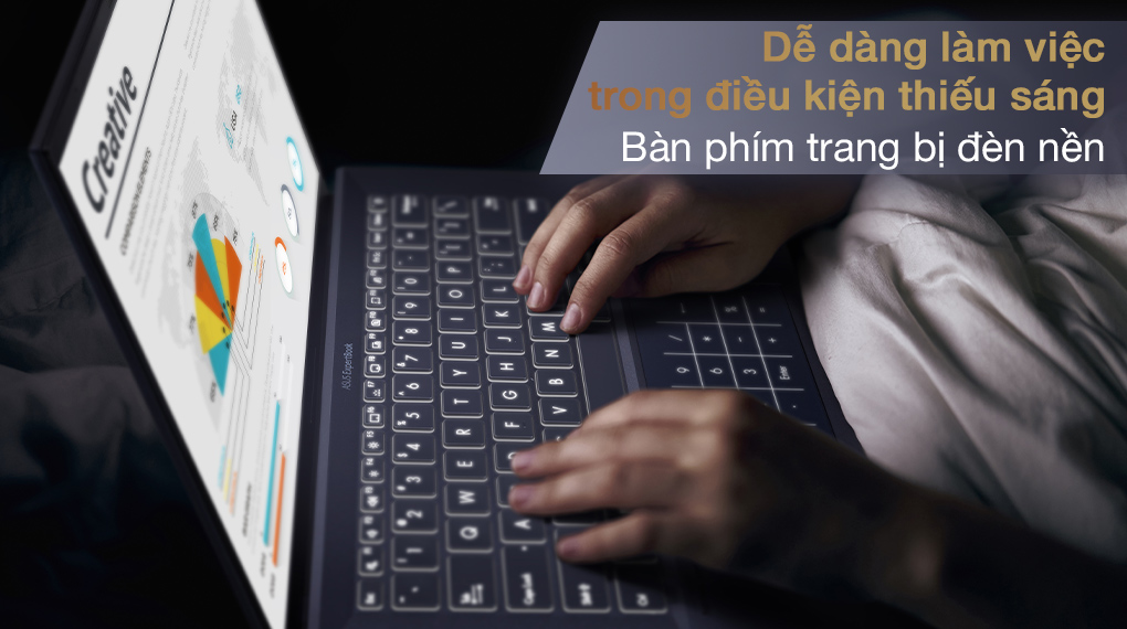 Bàn phím có khoảng cách rộng cùng độ nảy tốt, hành trình phím sâu, độ phản hồi nhanh được trang bị đèn nền thuận tiện, hỗ trợ bạn làm việc ở cả điều kiện ánh sáng kém mà không lo mỏi mắt, nhầm lẫn.