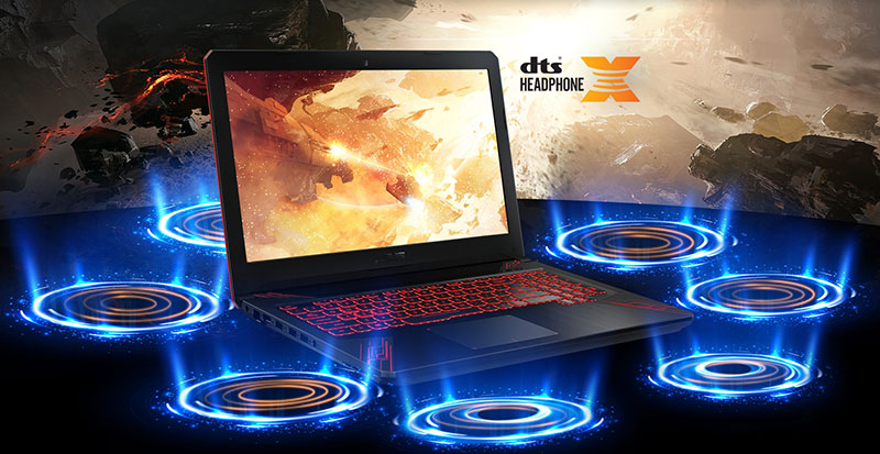 DTS Headphone:X™ mang lại trải nghiệm âm thanh vòm 7.1, cho trải nghiệm âm thanh trên tai nghe và loa ngoài ấn tượng. Dù bạn chơi game, xem phim hay nghe các bản nhạc thì FX504GD sẽ luôn giúp bạn như được sống trong môi trường hình ảnh bạn đang xem, phản ứng nhanh hơn với tiếng động từ nhiều phía.
