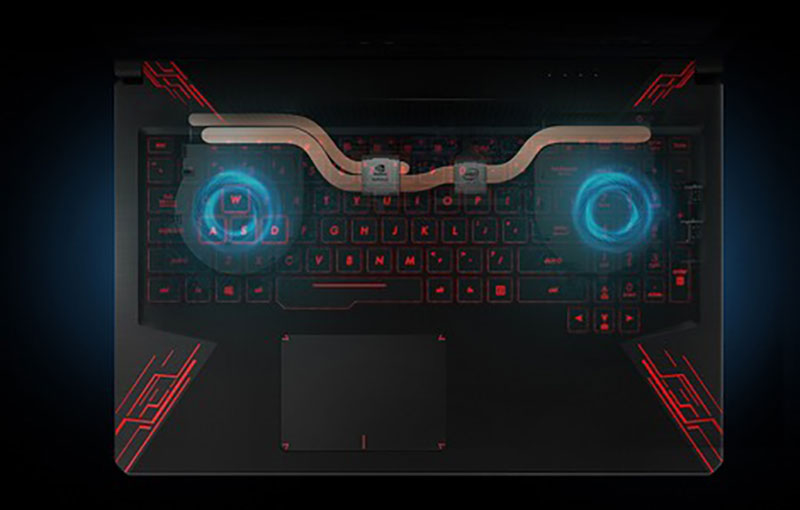 Thiết kế tản nhiệt của FX504GD kéo dài đáng kể tuổi thọ của máy và cung cấp hiệu suất ổn định hơn cho các tự game đồ họa cao, với công nghệ HyperCool kết hợp với hệ thống ADC tự làm sạch bụi bẩn và tùy chỉnh tốc độ quạt Fan Overboost. Loại bỏ bụi bẩn ra khỏi hệ thống bằng 2 ống chuyên dụng, ADC hoạt động như hệ thống miễn dịch trên laptop – Ngăn bụi bẩn đóng lại làm tắc nghẽn khe tản nhiệt, giúp hệ thống ổn định và hoạt động được lâu hơn.