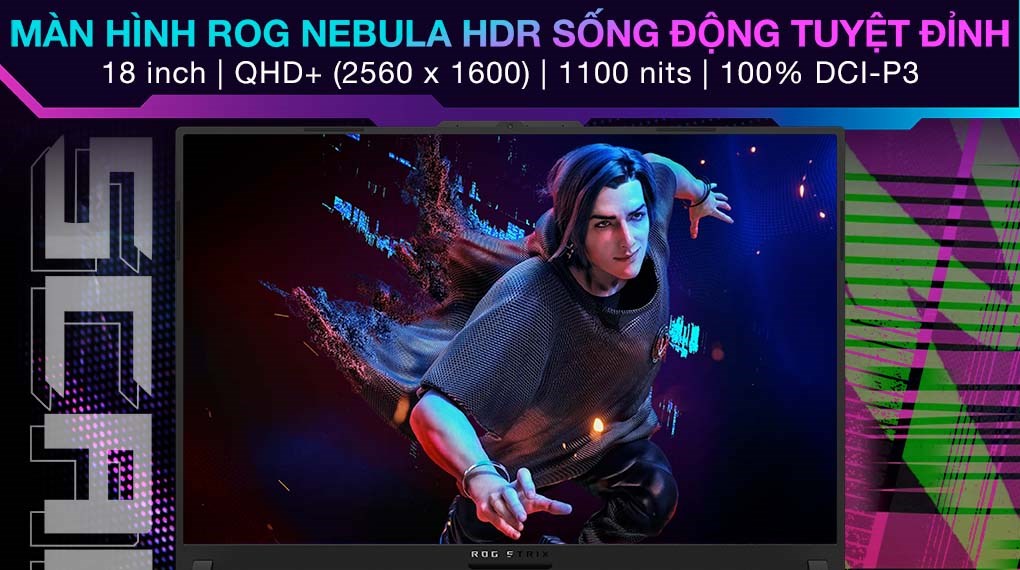 Laptop gaming với màn hình 18 inch, tấm nền Mini LED tươi sáng cùng tỷ lệ khung hình 16:10 đảm bảo rằng game thủ sẽ luôn có được trải nghiệm thật đã mắt với bất cứ tựa game nào, không gian bao quát tuyệt đối trên một mẫu máy xách tay. Không những thế, độ phân giải QHD+ (2560 x 1600) cũng tái tạo những khung cảnh game sắc nét, bắt mắt hơn.