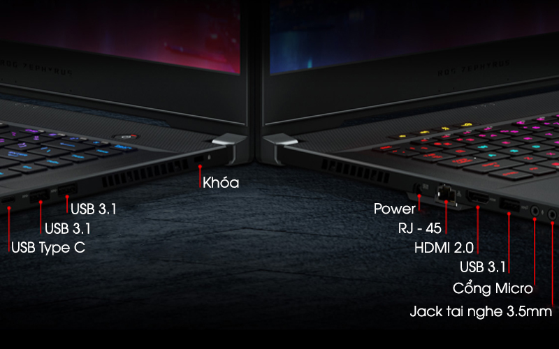 ROG Zephyrus M được trang bị các cổng kết nối tối tân nhất mang lại cho bạn tốc độ truyền dữ liệu siêu nhanh và khả năng tương thích tối đa. Giải trí trên màn hình lớn với đầu ra HDMI 2.0 hỗ trợ 4K UHD ở tần số quét 60Hz.