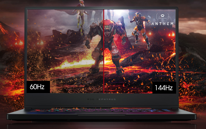 Asus ROG Zephyrus được trang bị màn hình 15.6 inch Full HD đem đến hình ảnh có độ sắc nét cao, không gian giải trí rộng, tần số quét màn hình lên đến 144Hz đảm bảo đồ họa sắc nét hơn, rõ ràng hơn ngay cả trong các trận game căng thẳng, nhịp độ nhanh.