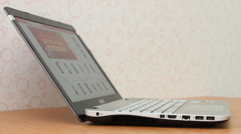 Ấn tượng đầu tiên khi nhìn thấy Asus N551JQ chính là màu bạc sáng bóng trên thân máy cùng với các vân tròn đồng tâm quanh logo của nhà sản xuất. Chính thiết kế vân tròn này giúp cho hạn chế bụi bẩn và vân tay trong quá trình sử dụng.