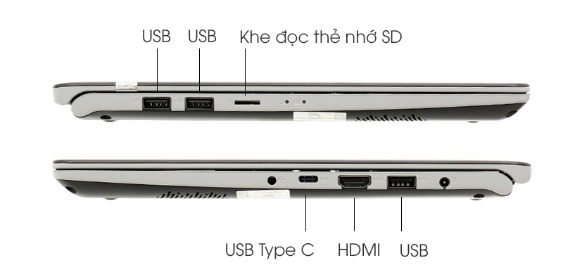 Laptop Asus S430UA được trang bị USB Type-C có khả năng kết nối dễ dàng, cắm theo chiều nào cũng được, tốc độ truyền tải dữ liệu nhanh chóng. Cổng HDMI và khe cắm thẻ SD của máy tính cho khả năng tương thích tiện lợi nhất với nhiều thiết bị ngoại vi, màn hình và máy chiếu, thẻ nhớ máy ảnh...