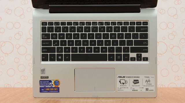 Asus TP300LA mang trên mình màn hình kích thước 13.3 inch với độ phân giải chuẩn HD 1366 x 768 px, cho chất lượng hiển thị tốt, màu sắc đẹp. Tuy màn hình không quá rộng nhưng như vậy nó đem lại lợi thế trong việc cầm nắm và sử dụng.