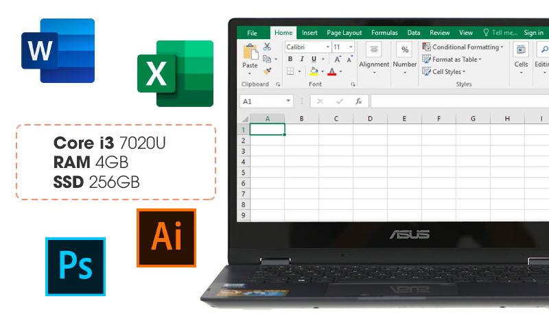 Asus VivoBook Flip 14 sử dụng bộ vi xử lý Intel Core i3 7020U và RAM 4 GB đủ dùng cho công việc văn phòng, học tập và giải trí nhẹ nhàng như xem phim, nghe nhạc,... phù hợp với những bạn sinh viên hay dân văn phòng cần một chiếc laptop cơ bản trong tầm giá phổ thông.