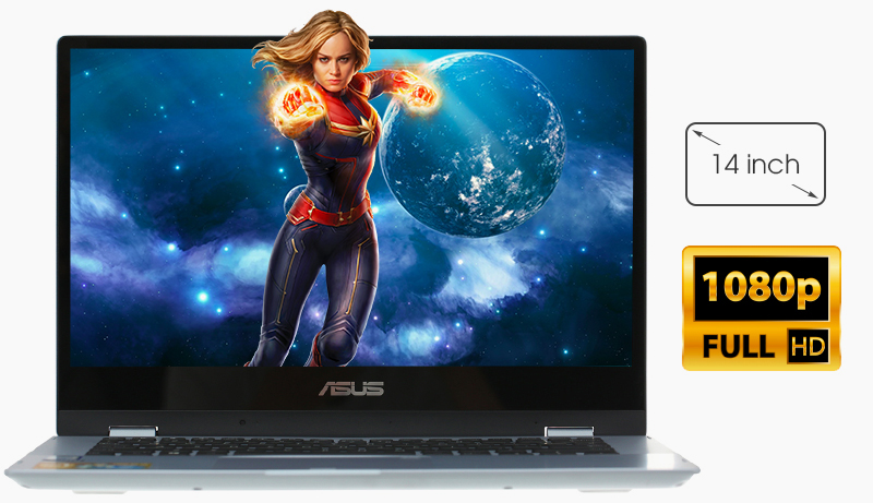 Màn hình của Asus VivoBook Flip 14 TP412UA có khả năng tái hiện hình ảnh, màu sắc rõ nét và chân thật là nhờ độ phân giải Full HD.