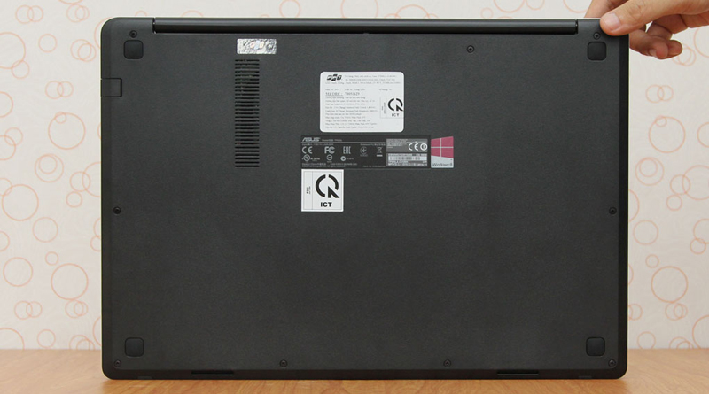 Trọng lượng chỉ 2.24 kg, bạn có thể cầm máy bằng 1 tay nhẹ nhàng và chỉ dày 22mm. Những con số khá ấn tượng khi so sánh với các dòng máy 15.6 inch. Góc máy bo tròn nhẹ nhàng như những thiết kế quen thuộc của Asus. Khi gấp, mình có thể nhanh chóng dùng 1 tay cho gọn máy vào ba lô mà không bị vướng víu gì.
