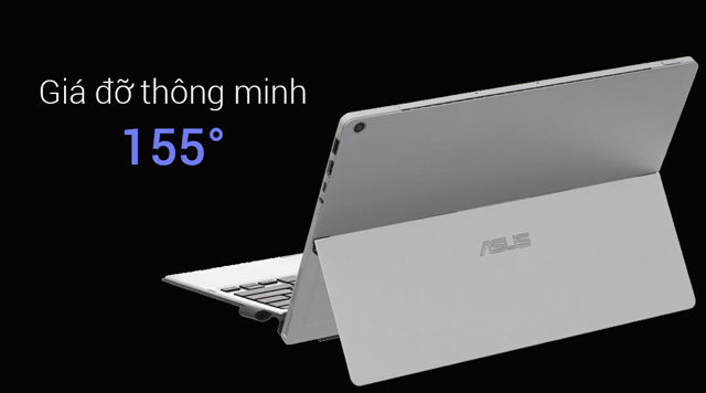 Ngoài ra, kiểu dáng của Asus Transformer Pro cũng rất đa dạng, người dùng có thể gắn bàn phím vào để sử dụng như chiếc laptop hoặc tháo phím để sử dụng như một chiếc máy tính bảng. Đặc biệt, sau lưng máy có một bản lề có thể mở ra một góc 155 độ để dựng đứng máy khi sử dụng rất tiện lợi.