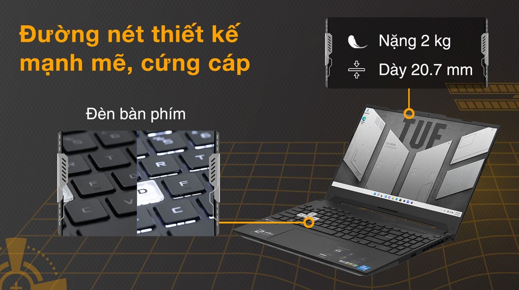 Laptop sở hữu lối thiết kế hiện đại cùng sắc đen mạnh mẽ khơi nguồn chiến đấu, khung máy dày 20.7 mm cùng khối lượng 2 kg vẫn có thể bỏ gọn trong một chiếc balo, linh hoạt khi cần di chuyển để phục vụ cho nhu cầu giải trí ở mọi nơi.