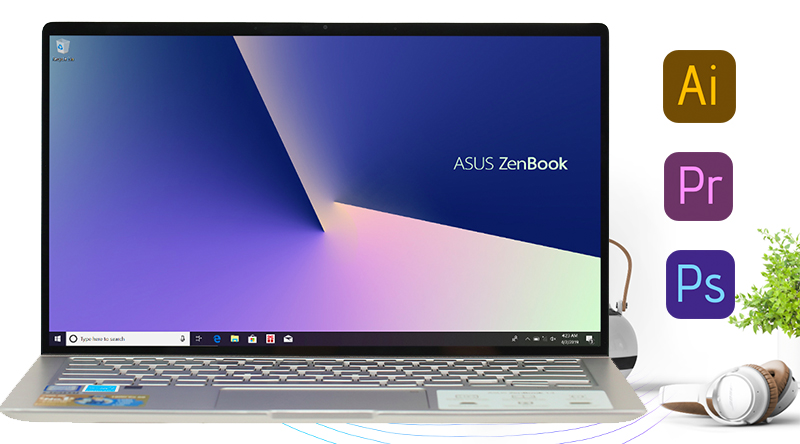 Chiếc laptop Asus này trang bị chip Intel Core i5 thế hệ 8, RAM 8 GB đáp ứng được các ứng dụng đồ họa cơ bản như Photoshop, AI, Pr... và các ứng dụng văn phòng. Bên cạnh đó Zenbook 14 được trang bị ổ cứng SSD 256 GB giúp mở mượt mà các ứng dụng trong làm việc mà không cần phải chờ đợi lâu.