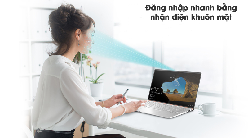 Laptop trang bị tính năng mở máy nhanh bằng cách quét khuôn mặt qua camera hồng ngoại sử dụng được cả trong điều kiện thiếu sáng.