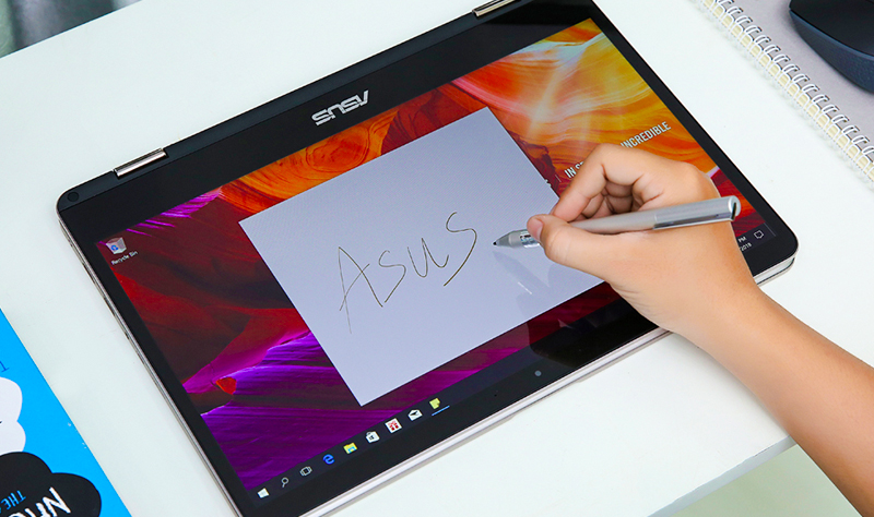 Màn hình cảm ứng 14 inch Full HD cùng công nghệ ASUS TruVivid cải thiện độ tương phản và giảm ánh sáng phản xạ để hình ảnh luôn tuyệt vời khi ở ngoài trời hay những nơi có quá nhiều ánh sáng.