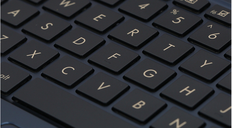 Bàn phím kích cỡ vừa vặn, hành trình phím không quá thưa và khá nhạy. có đèn nền của ZenBook cho trải nghiệm đánh máy tuyệt vời, đèn nền nhẹ bảo đảm bàn phím có thể sử dụng dễ dàng trong điều kiện thiếu sáng.