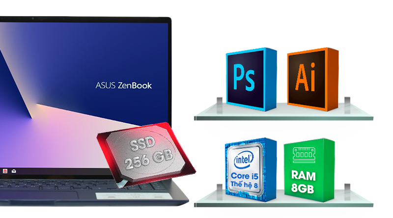 Zenbook 15 trang bị bộ xử lý Intel Core i5 thế hệ thứ 8 cùng RAM 8 GB xử lý mượt mà mọi đa nhiệm, đáp ứng hoàn hảo các nhu cầu văn phòng và giải trí thông thường.