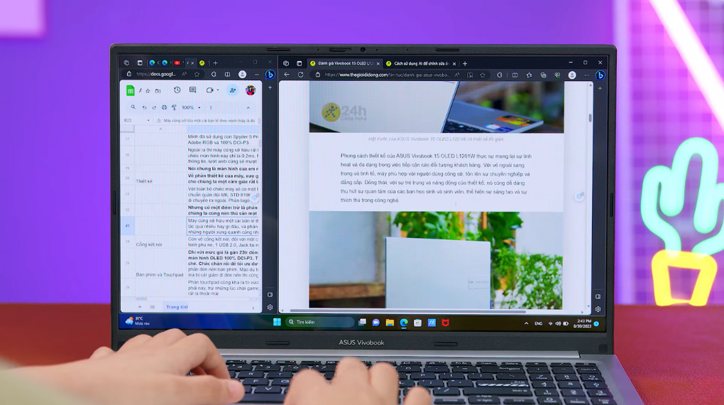 Với sức mạnh tối ưu của bộ vi xử lý Intel Core i9 13900H thế hệ thứ 13, Vivobook 15 OLED đã nâng tầm khả năng xử lý đến một đẳng cấp mới. Với tốc độ xung nhịp điên đảo lên đến 5.40 GHz và bộ nhớ đệm lên đến 24 MB, chiếc laptop này không chỉ là một công cụ đơn thuần, mà là một đồng minh đắc lực trong việc đối mặt với những thách thức đa dạng. Những công việc đòi hỏi sự mạnh mẽ như đồ họa chuyên nghiệp, chỉnh sửa video chất lượng cao và thậm chí là chạy đồng thời các ứng dụng nặng như Photoshop, Lightroom, Premiere Pro, AutoCAD và Solidworks em máy này đều có thể cân tất.