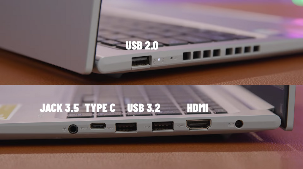 Ngoài ra, sự linh hoạt trong kết nối được thể hiện qua các cổng như HDMI, USB 2.0, Jack tai nghe 3.5 mm, USB 3.2, USB Type-C 3.2. Điều này giúp người dùng kết nối với nhiều thiết bị ngoại vi khác nhau, từ chuột, bàn phím, máy chiếu đến tai nghe và loa ngoài, làm cho mọi trải nghiệm sử dụng đều trở nên đa dạng.