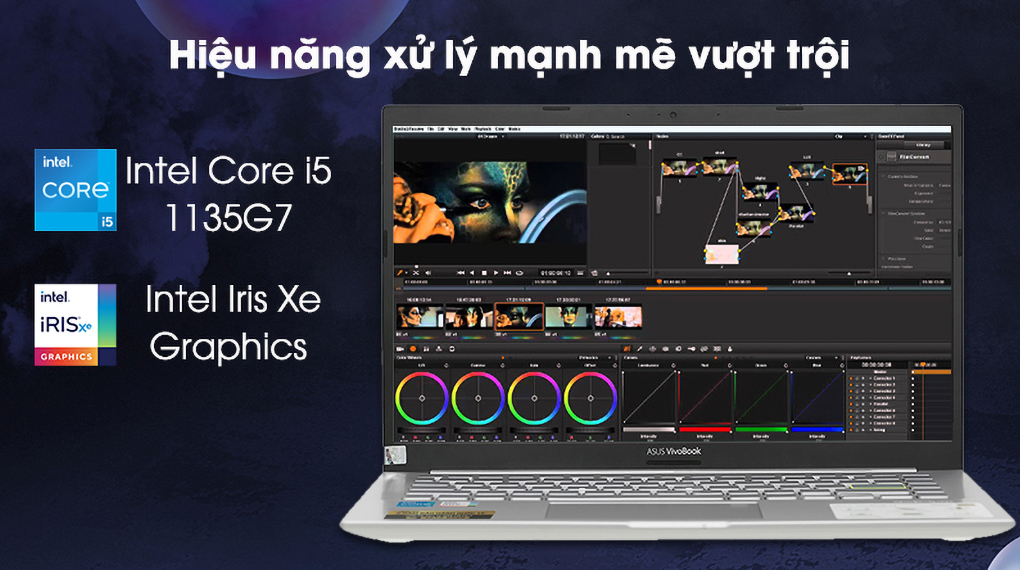 Asus VivoBook A415EA sử dụng chip Intel Core i5 Tiger Lake 1135G7 nên việc xử lí các ứng dụng văn phòng như Microsoft, làm đồ họa 2D bằng Photoshop, AI ổn định và mượt mà. Máy còn tích hợp card đồ họa Intel Iris Xe Graphics giúp tăng cao hiệu suất CPU khi chơi game, cải thiện hiệu quả AI khi tạo nội dung và mã hóa hiệu quả việc phát trực tuyến.