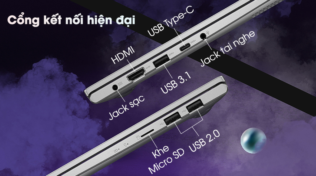 Tuy được thiết kế khá gọn nhẹ để tối ưu về trọng lượng nhưng laptop Asus vẫn trang bị khá đầy đủ các cổng kết nối cần thiết như USB 2.0, USB 3.1, HDMI và USB Type-C có khả năng truyền dữ liệu nhanh và tương thích với nhiều thiết bị thông dụng.