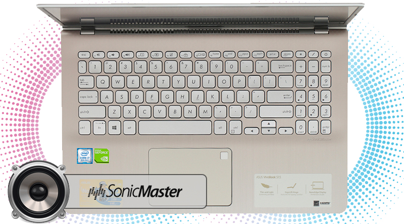 Bên cạnh màn hình Full HD viền siêu mỏng cho trải nghiệm hình ảnh choáng ngợp, các hoạt động chơi game và xem phim trên Asus S530FN BQ593T còn được tăng cường tính giải trí nhờ công nghệ âm thanh SonicMaster Audio. Với SonicMaster Audio, bạn như sống trong một thế giới ảo.