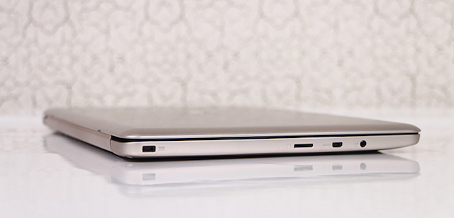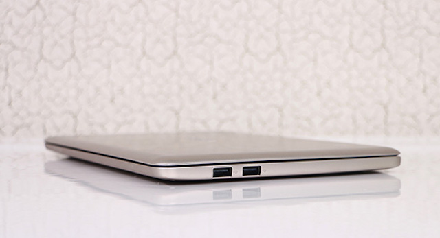 Do có thiết kế mỏng và nhỏ nên X205TA được trang bị các cổng kết nối ở mức tối thiểu với hai cổng USB 2.0 ở cạnh phải và một đầu đọc microSD, HDMI cùng jack cắm headphone/mic bên trái. Ngoài ra bạn còn nhận được hai loa stereo ẩn đằng sau lưới tản nhiệt phía dưới thân máy.