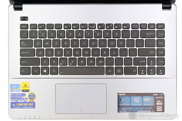 Mặc dù có giá phải chăng nhưng Asus vẫn trang bị cho X450CC bộ bàn phím chiclet nhạy bén, đáp ứng nhanh chóng. Các phím cách nhau rộng rãi, hơi lõm ở giữa giúp người dùng thoải mái đánh phím, nhanh hơn, giảm được lỗi đánh nhầm.