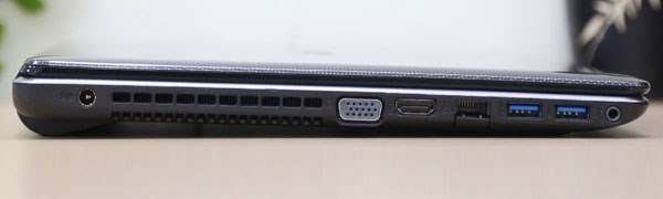 Thiết bị có đến 2 cổng USB 3.0 thay vì một cổng như các thiết bị khác và bên phải có 1 cổng USB 2.0, rất thuận tiện nếu bạn có nhu cầu cắm chuột ngoài. Ngoài ra thiết bị còn có các cổng quan trọng khác như cổng VGA, HDMI, khe đọc thẻ nhớ, cổng LAN và jack audio 3.5mm