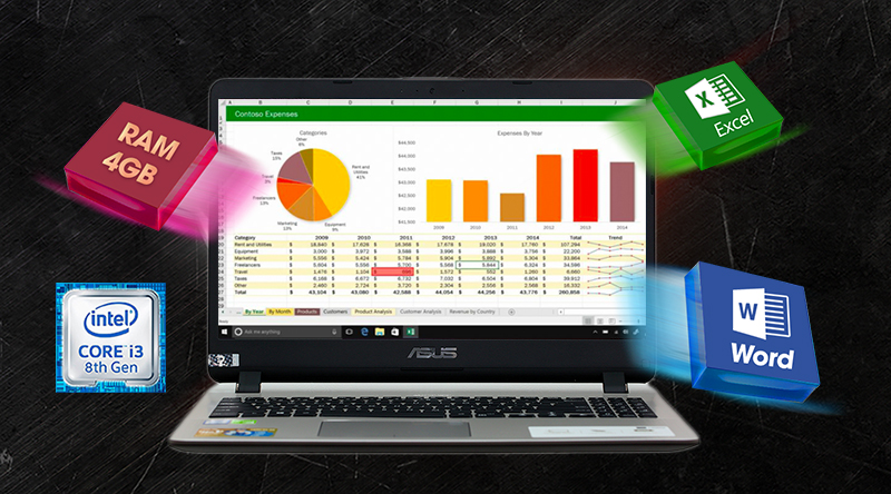 Được trang bị chip Intel Core i3, RAM 4 GB, laptop Asus X507UF EJ117T mang lại khả năng sử dụng mượt mà các ứng dụng văn phòng: soạn thảo Word, làm việc với bảng tính Excel hay trình chiếu cùng Powerpoint,... là sự lựa chọn phù hợp đối với các bạn học sinh, sinh viên đang tìm kiếm một sản phẩm hỗ trợ cho việc học.