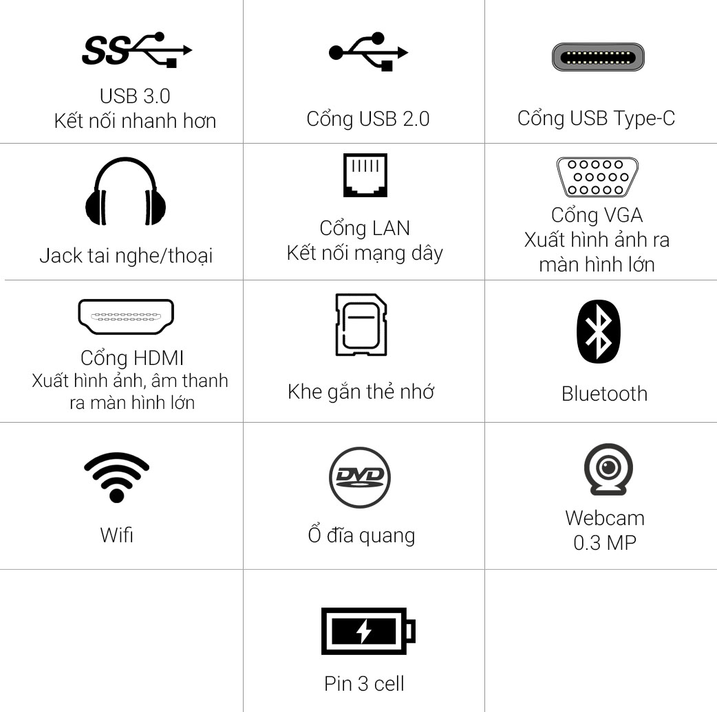 Các cổng kết nối tập trung hầu hết ở cạnh trái