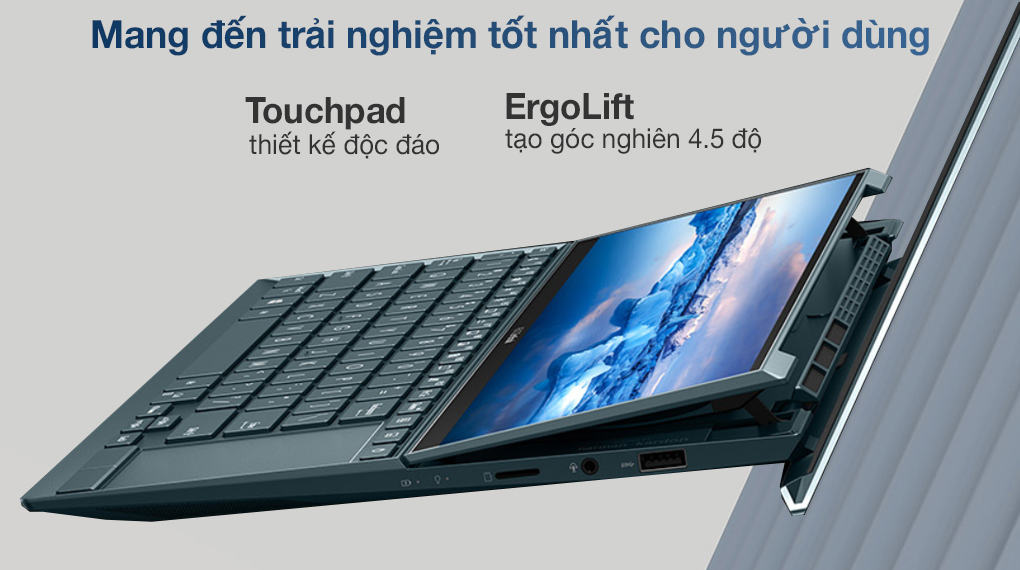 Đặc biệt, nhà Asus trang bị cho chiếc laptop này một ScreenPad Plus 12.65 inch (1920 x 515 IPS Panel) cảm ứng thứ hai tự động nghiêng theo góc 7 độ giúp bạn thỏa sức sáng tạo, tiện dụng khi thao tác, trải nghiệm xem liền mạch giữa hai màn hình, đồng thời giảm độ lóa và phản chiếu, tối ưu giúp cải thiện quy trình làm việc của mình.