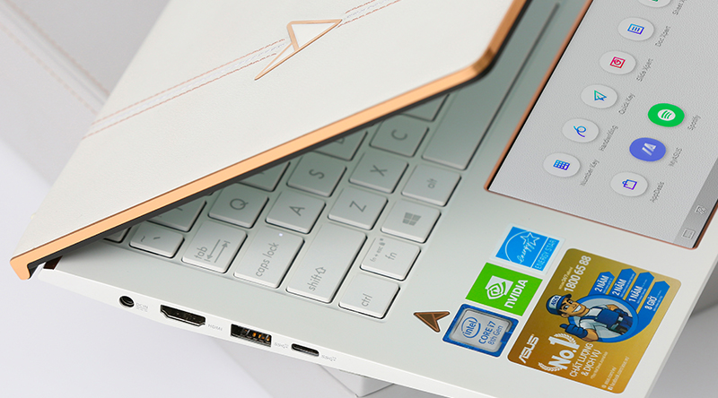Thiết kế đường viền, thanh bản lề bằng đồng, lớp vỏ da thật kết hợp với logo dát vàng độc quyền trên nắp máy là những nét tô điểm bắt mắt khiến ZenBook Edition 30 trở nên đặc biệt.