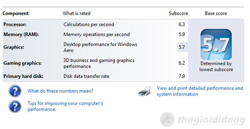 Kết quả đánh giá bằng Windows Experience Index