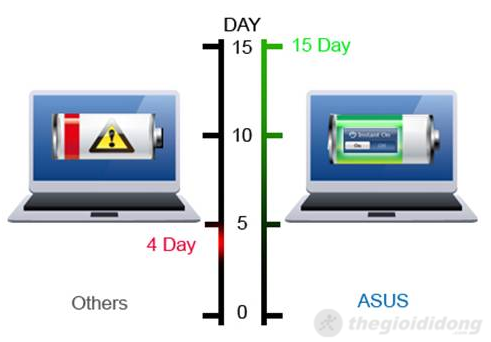 UX21E được trang bị pin liền loại tấm lớp (không sử dụng cell thông thường như các laptop khác để tăng độ mỏng). Sử dụng Stress My PC full load 100% CPU (nhiệt độ Chip luôn trong khoảng 60 độ), máy chạy được 2h20' thì hết pin. Như vậy nếu sử dụng bình quân các tác vụ thông thường, UX21E hoàn toàn có thể đáp ứng một ngày làm việc (hơn 8 tiếng). Thời lượng pin ấn tượng này có được là nhờ ASUS tích hợp cho máy công nghệ tiết kiêm pin độc quyền hàng đầu của hãng giúp bảo tồn năng lượng và kéo dài tuổi thọ của pin lên tới 25%.