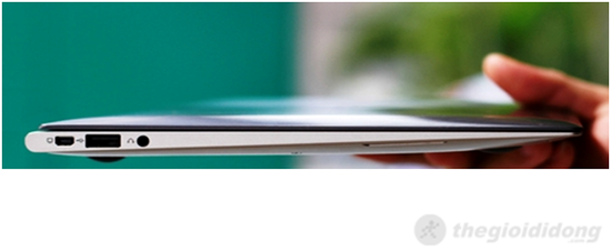UX21E khá hạn chế về cổng kết nối với chỉ một cổng miniHDMI, USB 3.0 và USB 2.0 ở hai cạnh bên và không có khe đọc thẻ nhớ SD. Với một ultrabook chỉ mỏng 3 mm thì điều này cũng không khó hiểu. Tuy nhiên, bộ phụ kiện đi kèm máy có hỗ trợ một cổng chuyển từ USB qua cổng LAN, một cổng chuyển để sử dụng giắc VGA. Nhưng đáng tiếc là không có cổng chuyển từ mini HDMI sang HDMI thông thường.
