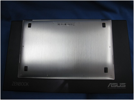 Lớp vỏ mặt ngoài chính là điểm phá cách ấn tượng nhấ trông thiết kế của sản phẩm này, với các vòng tròn hướng tâm. Theo giới thiệu của Asus, các đường tròn đồng tâm tinh quay lan tỏa ra phía ngoài thể hiện sự yên tĩnh và sức mạnh không giới hạn của chiếc máy. Thoạt nhìn, các đường vân này khá giống vân xước nhưng thực tế lại là các vân in chìm trên bề mặt nhôm hơi ráp. Mặt dưới cũng có thêm 4 chân nhựa để hạn chế tình trạng xước khi sử dụng.