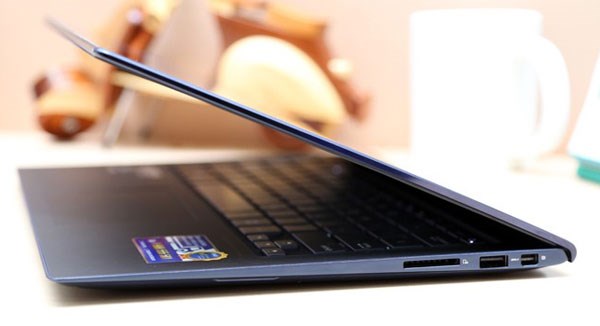 Thiết bị chỉ mỏng 15.5mm và nhẹ chỉ 1.2kg, những con số đã nói lên tất cả và đây có lẽ là kích thước mọi người đều muốn có trên chiếc laptop của mình. Asus tạo nên những đường vát mỏng về phía trước cộng thêm các góc cạnh sắc xảo, trông chiếc Zenbook này càng mỏng và ấn tượng hơn.