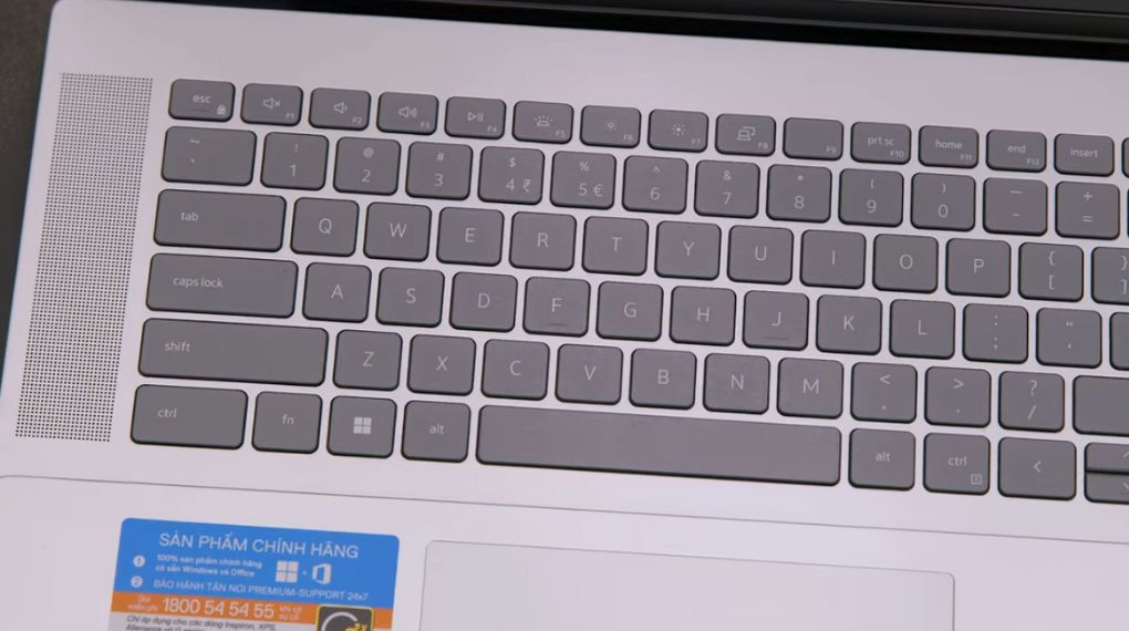 Dell Inspiron 16 cũng được trang bị đèn nền bàn phím, hỗ trợ mình gõ phím trong điều kiện ánh sáng thấp một cách thuận tiện hơn. Công nghệ bảo mật vân tay được tích hợp ở nút nguồn cho phép mình dễ dàng đăng nhập vào máy chỉ mình một chạm tay nhẹ đơn giản.