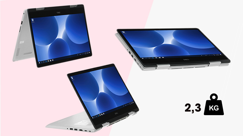 Laptop 2 trong 1 với bản lề gập xoay 360 độ, giúp bạn thỏa sức sáng tạo trên chính chiếc laptop của mình. Sản phẩm có khối lượng 2.3 kg, tuy không quá mỏng nhẹ nhưng bạn vẫn có thể đem theo làm việc cả ngày mà không cảm thấy quá nặng nề.