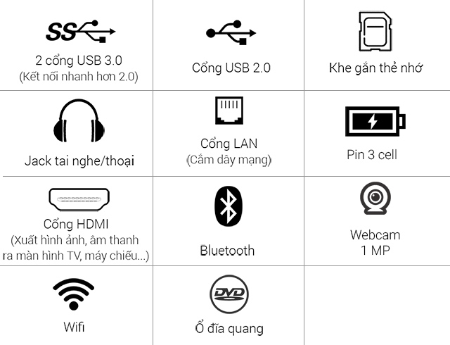 Khả năng trình chiếu, kết nối máy In/Scan Máy, có ổ đĩa quang giúp bạn xem phim hay học tiếng Anh với đĩa DVD dễ dàng hơn.