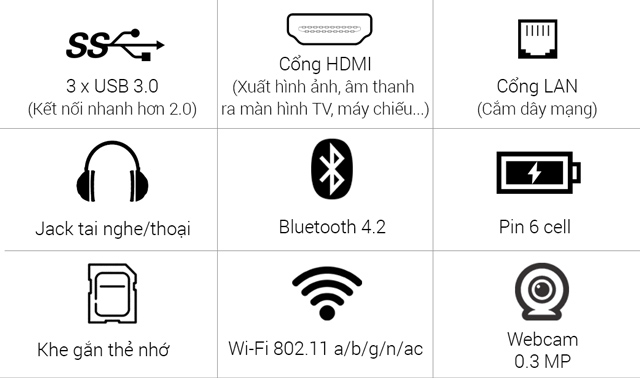 Máy trang bị đầy đủ các cổng kết nối USB 3.0, HDMI, LAN (RJ45) vì vậy sẽ dễ dàng kết nối với máy in hoặc có thể trình chiếu ra các màn hình lớn hơn như tivi để chơi game hoặc làm việc.