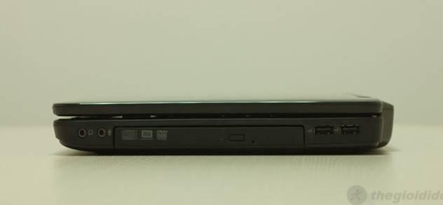 Cạnh phải có hai cổng tai nghe/micro, ổ đĩa quang, cùng với 2 cổng USB 2.0.