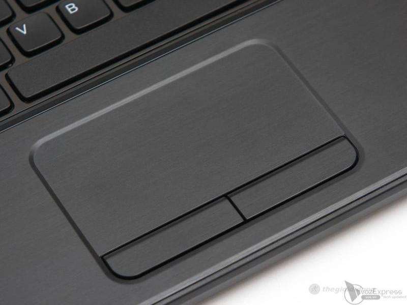Touchpad được sơn cùng màu với phần lót tay và hơi lõm xuống khoảng 1mm. Sử dụng touchpad do Alps cung cấp với đầy đủ cá tính năng cảm ứng đa điểm. Cuộn, xoay hình, zoom, thậm chí với các tính năng sử dụng 3 ngón tay cũng là chuyện dễ dàng với touchpad này. Bề mặt cảm ứng mang lại cảm giác di chột tốt, nhẹ nhàng, khả năng đáp ứng tốt và nhạy ngay cả khi tay bị ướt. Hai phím chuột trái và chuột phải khá lớn, bấm êm và nhạy, bạn sẽ không còn nghe những tiếng lách tách khó chịu từ hai nút chuột trái-phải khi sử dụng trong đêm. Với người sử dụng có thói quen sử dụng chuột rời, touchpad cũng được trang bị khả năng tự vô hiệu hóa khi phát hiện chuột gắn ngoài, tránh cho người dùng vô tình di chuyển sai vị trí con trỏ khi đang sử dụng bàn phím.