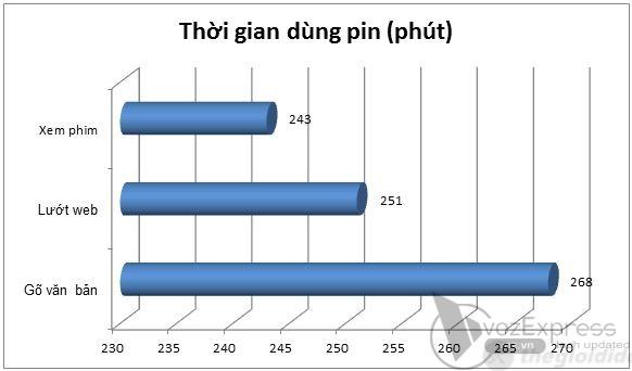 Thời gian sử dụng của pin với một số tác vụ thông thường