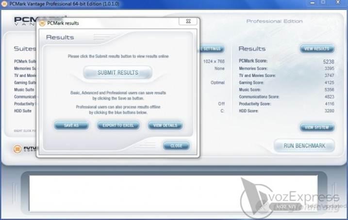 Điểm benchmark bằng phần mềm PC Mark Vantage