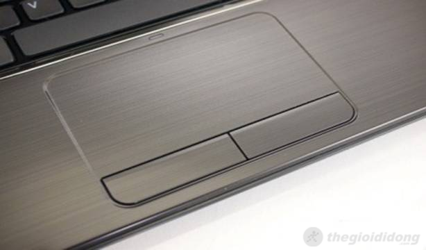 Cũng như bàn phím, touchpad của Dell Inspiron N5110 có kích thước lớn, rộng rãi và hoạt động khá hiệu quả. Bề mặt touchpad này có cùng tông màu với chiếu nghỉ tay, rất mịn cho cảm giác rê chuột rất nhanh, dễ dàng và chính xác. Phía trên là đèn báo hiệu hiển thị touchpad được sử dụng hay không. Tuy nhiên, vì thiết kế nhẵn mịn, nên lúc thao tác dễ bị trượt tay, nhất là khi có nhiều mồ hôi. Hai phím chuột nằm tách biệt, khi thao tác cho cảm giác thoải mái và nhẹ nhàng, không gây tiếng kêu.